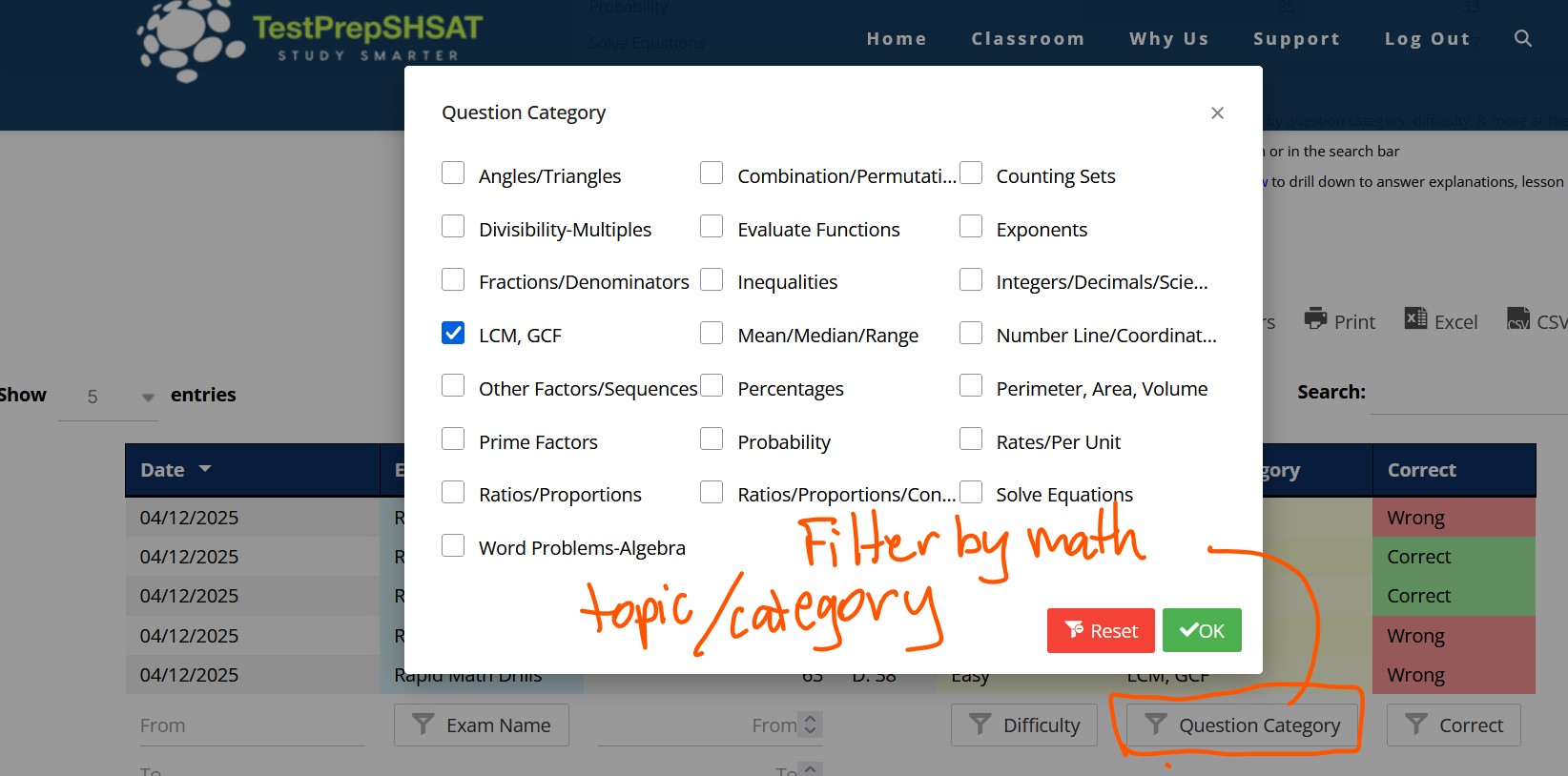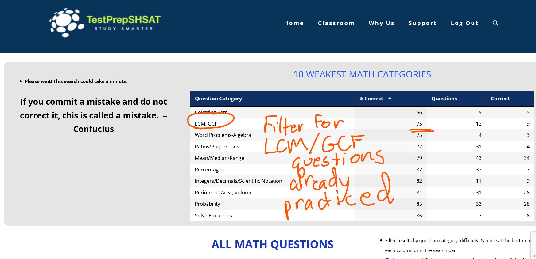 Filter your results for the math topic you found was one of your ten weakest (GCF/LCM is this case).
