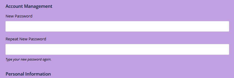 Navigate to your Member Accounts page from the main menu Home>Membership Accounts. Click the blue link to Change Password. Scroll down your profile page to Account Management. Type your new password in the New Password input box shown and repeat the exercise in the Repeat Password input box. Scroll down and select Update Profile at the bottom of the page and you will receive a notice that your Profile is Changed. Your new password will be active. See screenshots below.